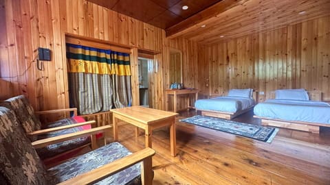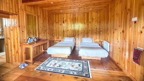 The rooms at Rinchenling Lodge are designed in traditional Bhutanese style, offering a warm and cozy ambiance. Each room is spacious and well-appointed, featuring comfortable beds, wooden furnishings, and modern amenities. Guests can enjoy beautiful views of the surrounding nature from their windows, adding to the serene and peaceful experience. The rooms also include en-suite bathrooms with hot stone baths, providing a perfect blend of tradition and comfort for a relaxing stay.